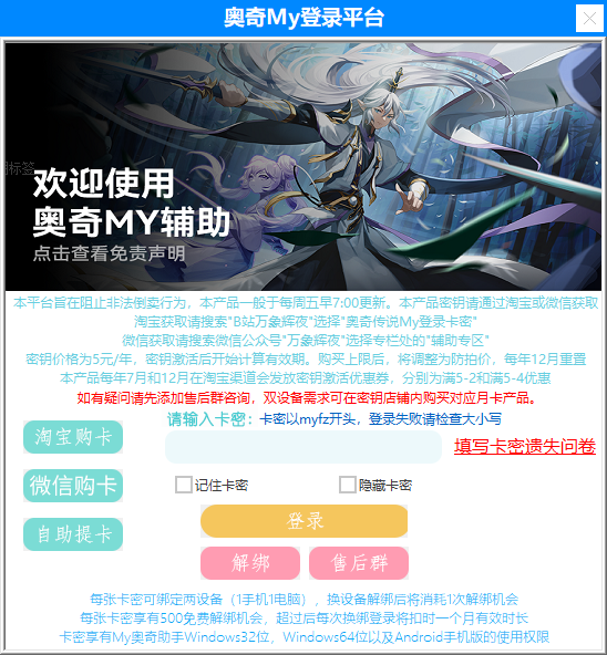 再最开始,请先确定您购买的卡密是My辅助的,My辅助卡密的商品详情页面长这个样!