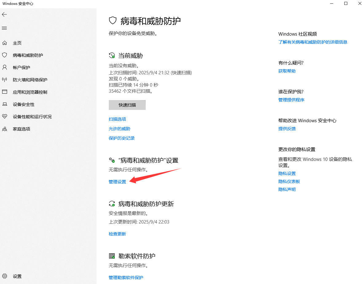 随后点击病毒及威胁防护