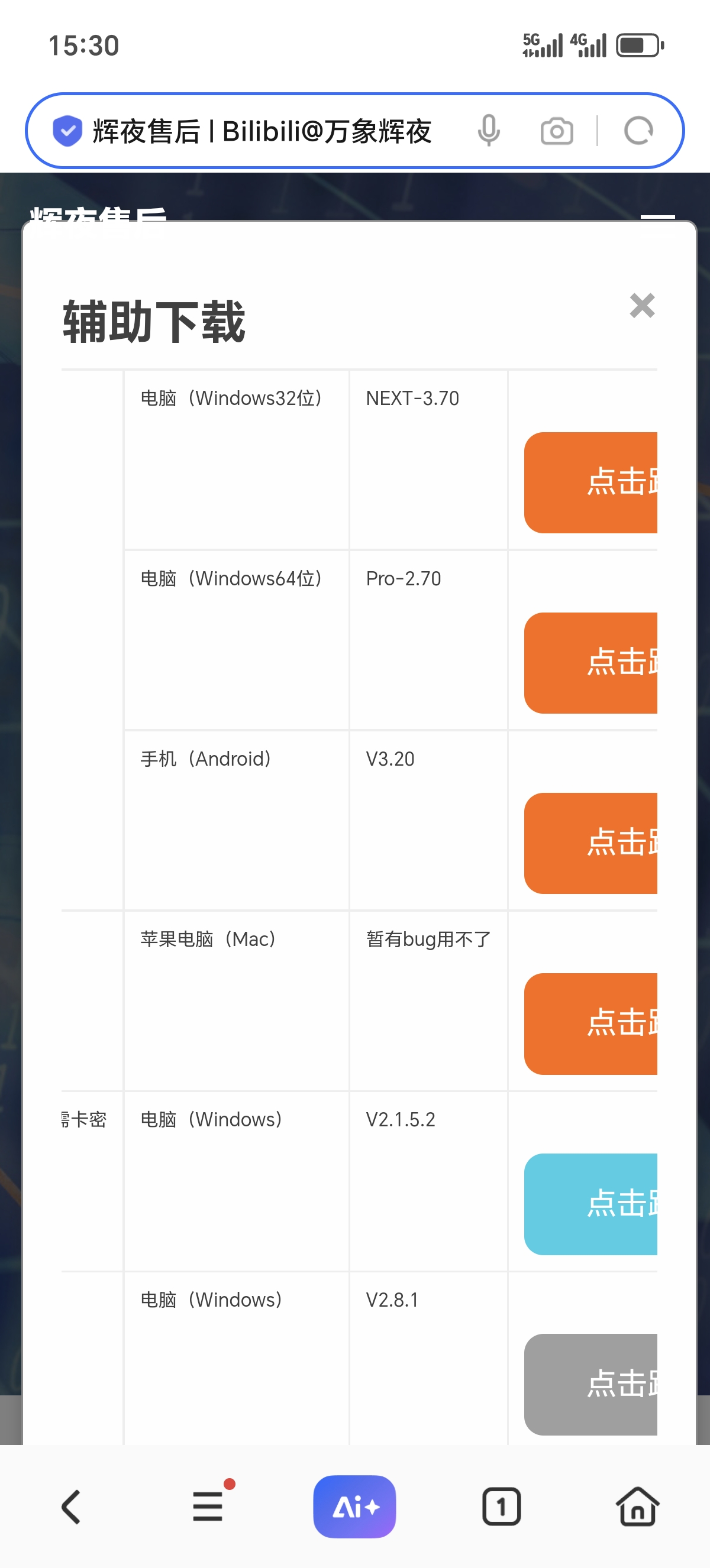 首先打开辉夜售后的官网,点击“下载辅助”