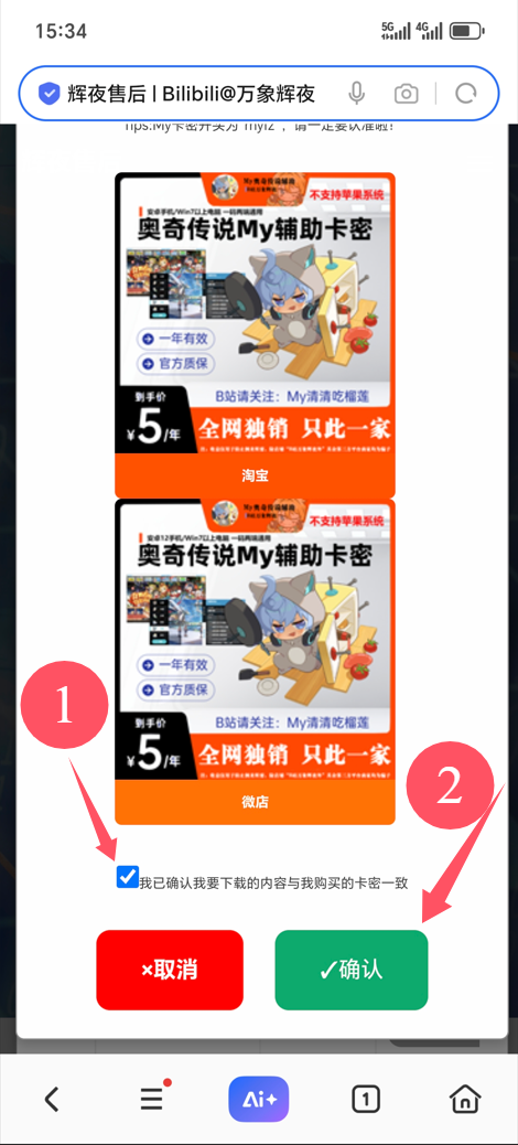 下滑,确认需要使用的卡密自己已拥有后,勾选确认框,点进去下载