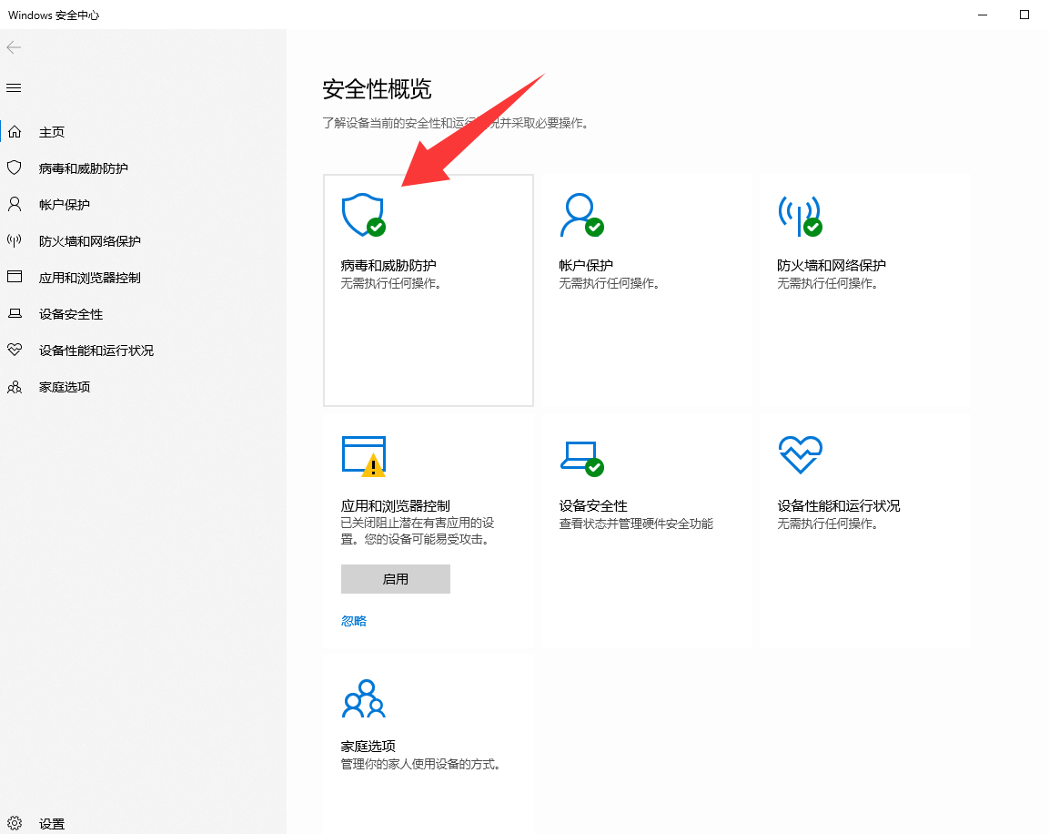 随后点击病毒及威胁防护